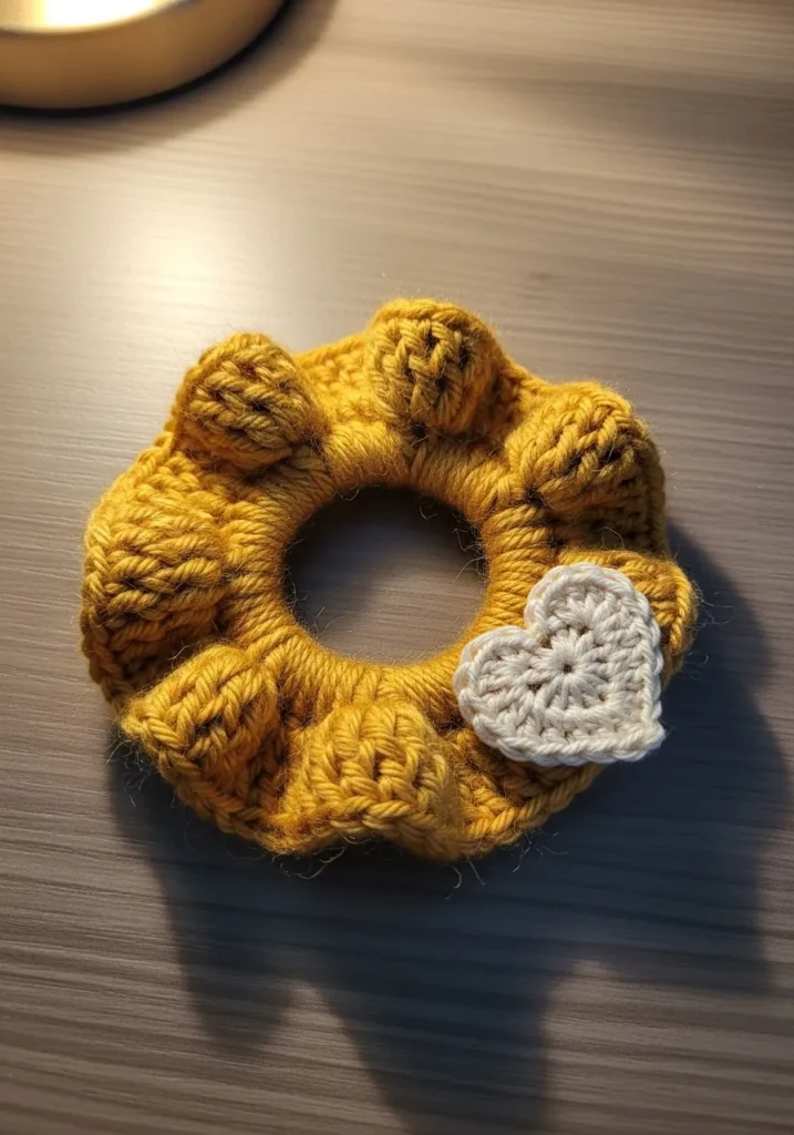 I feel like this project is such a win because it lets you practice texture without the stress of a massive blanket. Scrunchies are the ultimate instant gratification craft since you can finish one while watching a single episode of your favorite show. Adding that tiny heart is a clever way to make a simple accessory look like something you’d find in a trendy boutique. It is a fantastic way to use up those leftover scraps of yarn sitting in your stash while creating something you can actually wear every day.