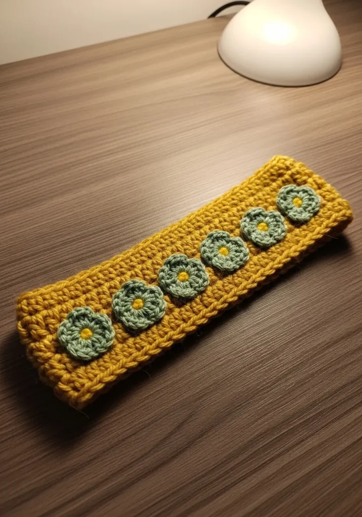 I love this project because it is basically a “cheat code” for looking like a crochet pro. You only need to master a simple rectangular base, and then you get to play with the tiny flowers as separate little appliques. It is the perfect way to use up those random scraps of yarn sitting in your craft bin. Plus, a headband like this is way faster to finish than a full scarf, so you get that shot of crafting dopamine in just one afternoon.