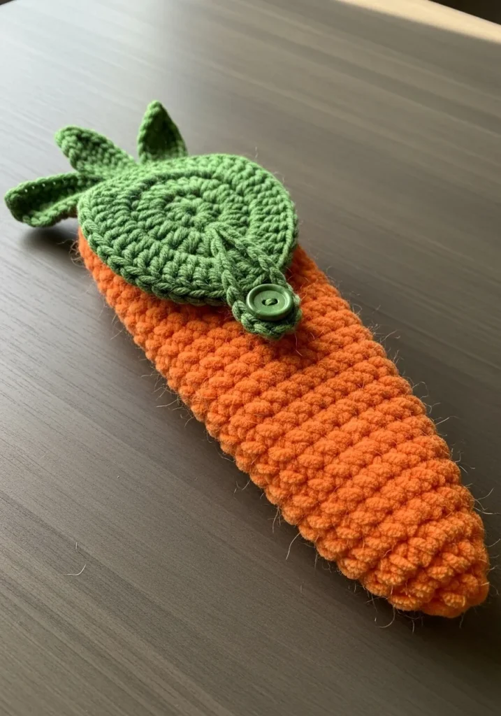 I think this is such a clever project for beginners because it feels like you are making a toy, but you end up with something you can actually use every day. If you want to move beyond basic scarves, this tapered design is a fantastic way to practice gradual decreases without the stress of a more complex pattern. It is the perfect conversation starter for your desk or a super cute gift for a student who loves unique school supplies. You will honestly get a kick out of how fast it comes together, and it is just so satisfying to fasten that little green button and see your carrot complete.