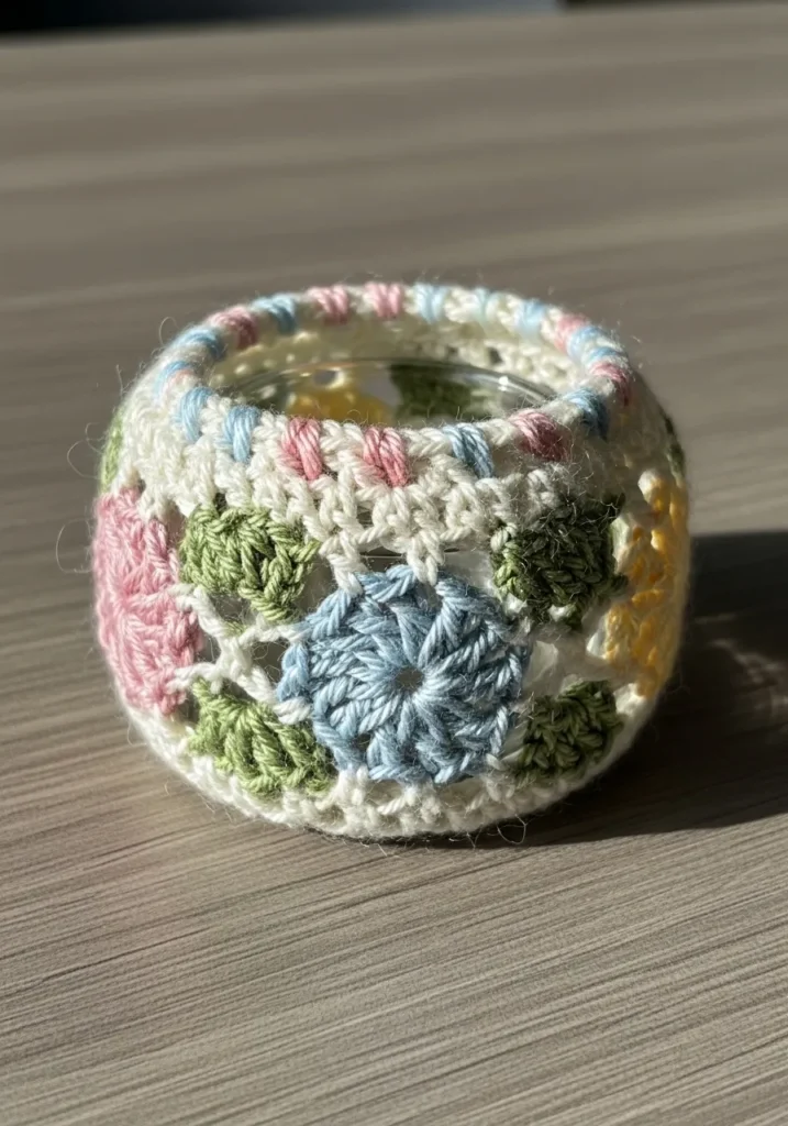Floral Crochet Patchwork Candle Holder