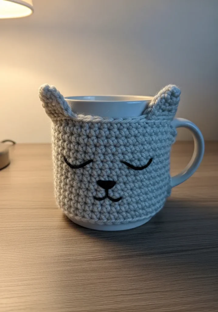 I have such a soft spot for projects like this because they are both practical and ridiculously cute. It is the kind of small crochet piece that comes together quickly but still makes people smile. I love gifting these during the colder months since they feel thoughtful without taking forever to make. Plus, sipping tea from a mug that looks like a sleepy bear just makes the whole moment feel calmer.