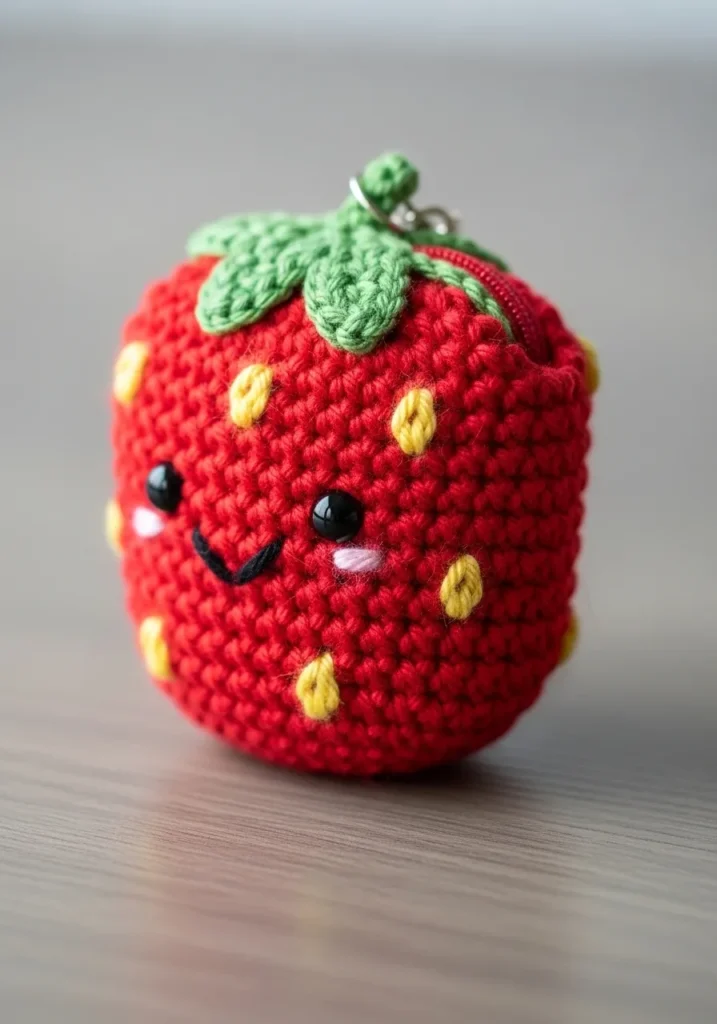 I find fruit themed amigurumi so playful and satisfying to make. The color changes keep things interesting without being overwhelming. It is a quick project that feels like an instant mood booster. I also love using little strawberries like this as keychains or bowl fillers because they bring a pop of color anywhere they land.