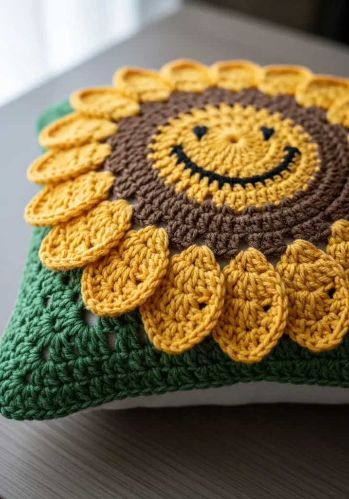 Smiley Sunflower Crochet Pillow