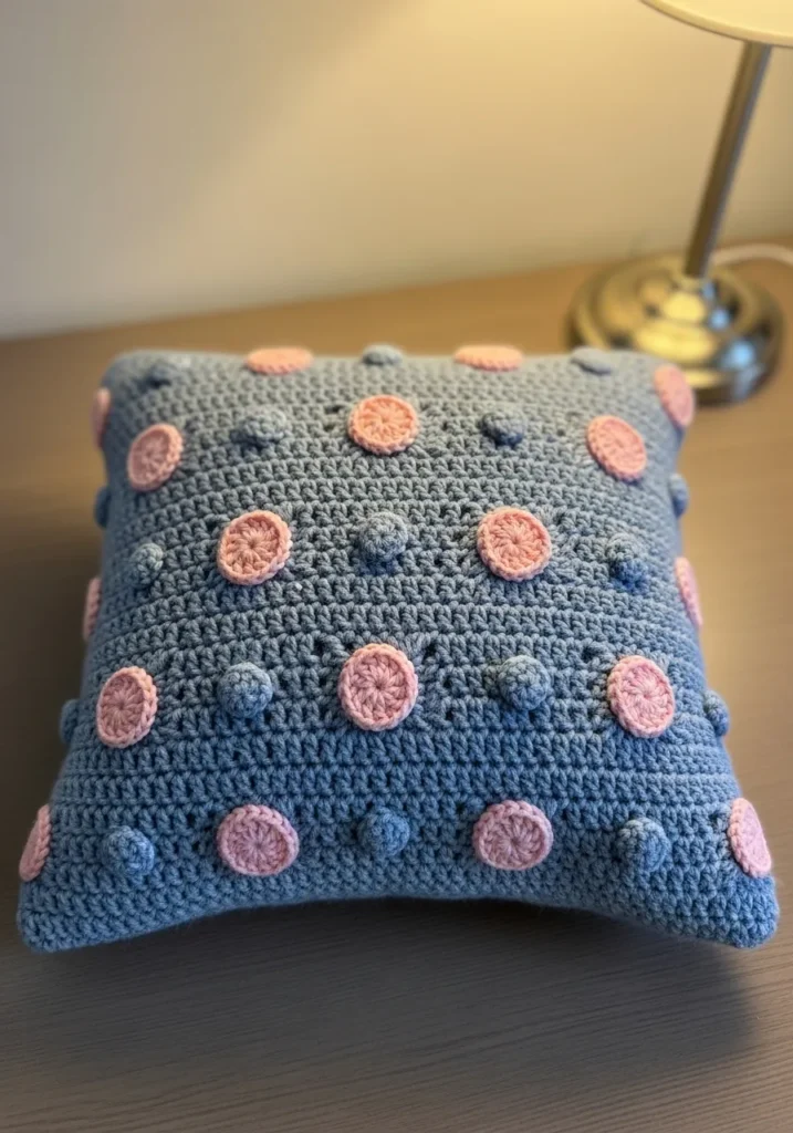 I think home decor items like this are absolute gold for your shop because everyone is looking for that one unique piece to pull a room together. If you’re into projects that let you practice rhythmic bobbles and neat appliqué work, you will find this so rewarding to assemble. No matter your home style, these pillows add such a fun and tactile element that photos just don’t fully capture. I love how the pink and blue combo feels classic, but the 3D texture keeps it feeling totally fresh and modern for a Pinterest-worthy home.