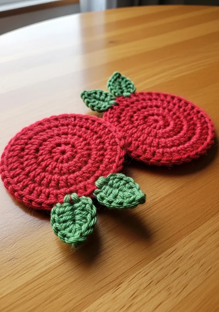 I’m such a fan of these because they bring a little bit of orchard charm into your bathroom. If you’re looking to expand your shop’s “spa and beauty” section, these are an absolute home run. They are incredibly quick to make, allowing you to use up small scraps of red and green yarn while creating a high-value set. I love how the leaf detail makes them feel like a premium, thoughtfully designed gift rather than just a basic utility item.