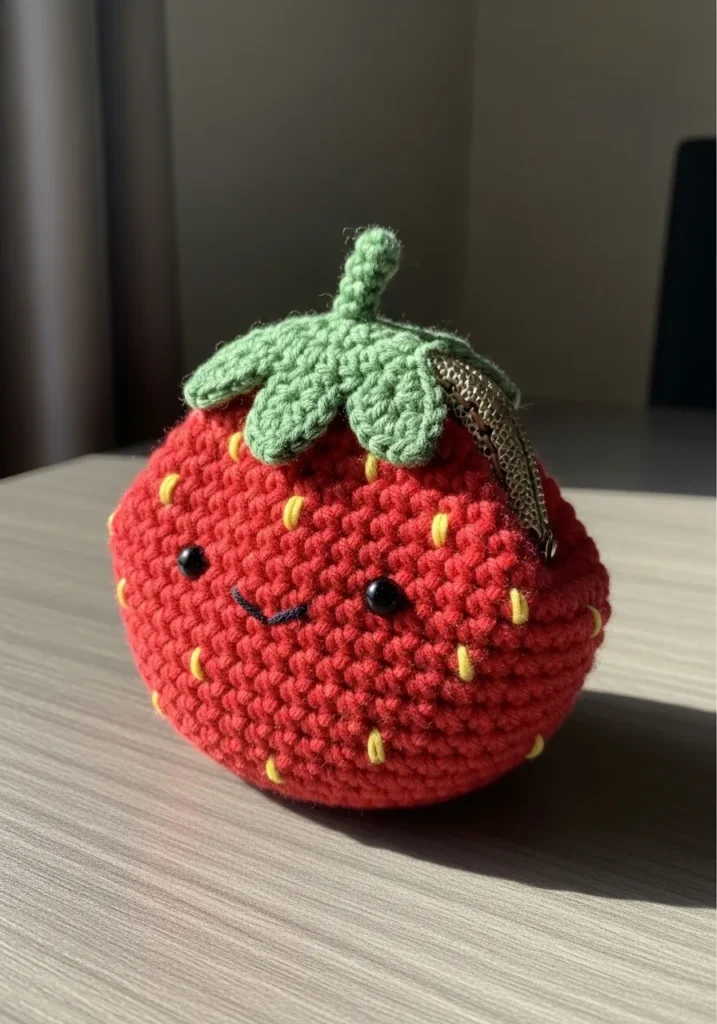 I cannot resist fruit themed crochet, and this strawberry is just too cute. It is the kind of tiny decor piece that makes me grin every time I see it. It is simple, charming, and surprisingly addictive to make.