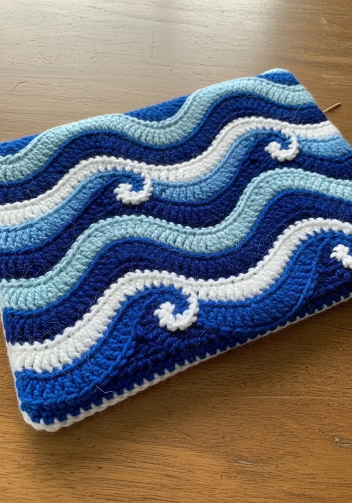 I absolutely love how this piece captures that calming seaside vibe in such a practical form. It feels like carrying a little piece of the ocean with you, which makes it both charming and unique. I would use this as a tablet sleeve or oversized clutch just to show off those gorgeous waves. It is the kind of project that looks impressive but is so satisfying to stitch row by row.