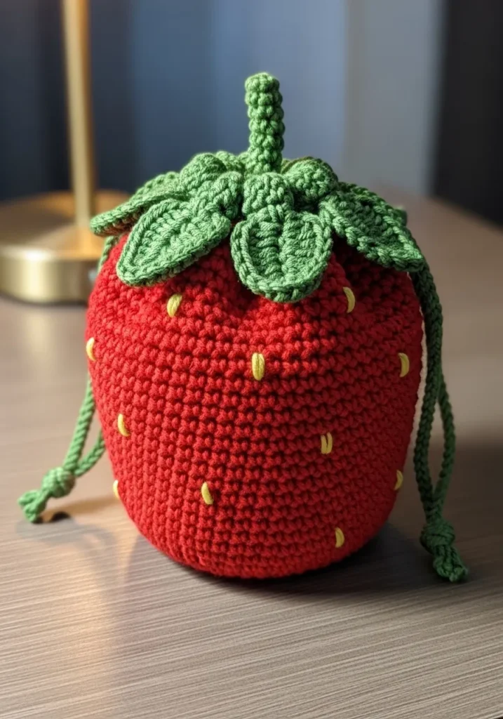 I think fruit themed crochet is just pure joy. This little strawberry would be perfect for storing small treasures or tossing into a tote bag for a pop of color. I love that it feels playful but still practical, which is always a win in my book.