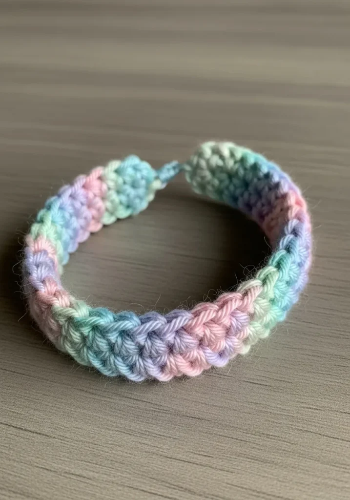 I’m such a fan of projects that use up those tiny scraps of variegated yarn hiding at the bottom of my craft bin. This bracelet is a total winner because it takes almost no time to whip up, and you get to practice keeping your tension even without the stress of a massive blanket. It’s the perfect little “just because” gift for a friend or a quick weekend win when you want to see immediate results. Plus, wearing a tiny rainbow on your wrist is a guaranteed mood booster even on the most boring Monday morning.