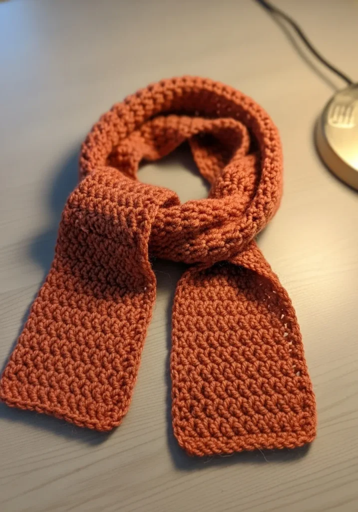 I absolutely love this project because it is the ultimate Netflix and chill craft. The moss stitch is just a simple sequence of single crochets and chains, so once you get into the rhythm, your hands just take over while you catch up on your favorite shows. It looks way more intricate than it actually is, which is my favorite kind of “cheat code” for handmade gifts. Plus, the skinny silhouette means it works up surprisingly fast without requiring mountains of yarn.