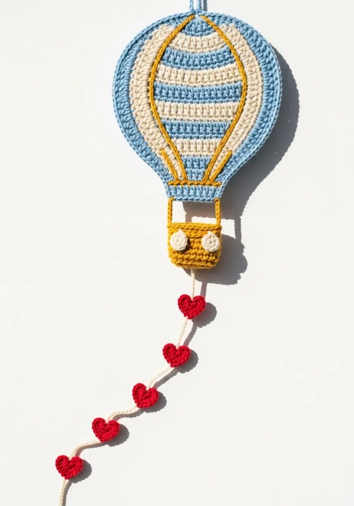 I absolutely love how charming this feels without being complicated. The balloon shape is simple to build row by row, and adding those little hearts at the end is the most satisfying finishing touch. It looks like something straight out of a storybook, yet it is totally doable in one cozy evening on the couch.