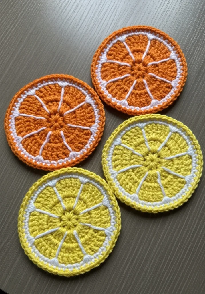 Citrus Slice Crochet Coasters