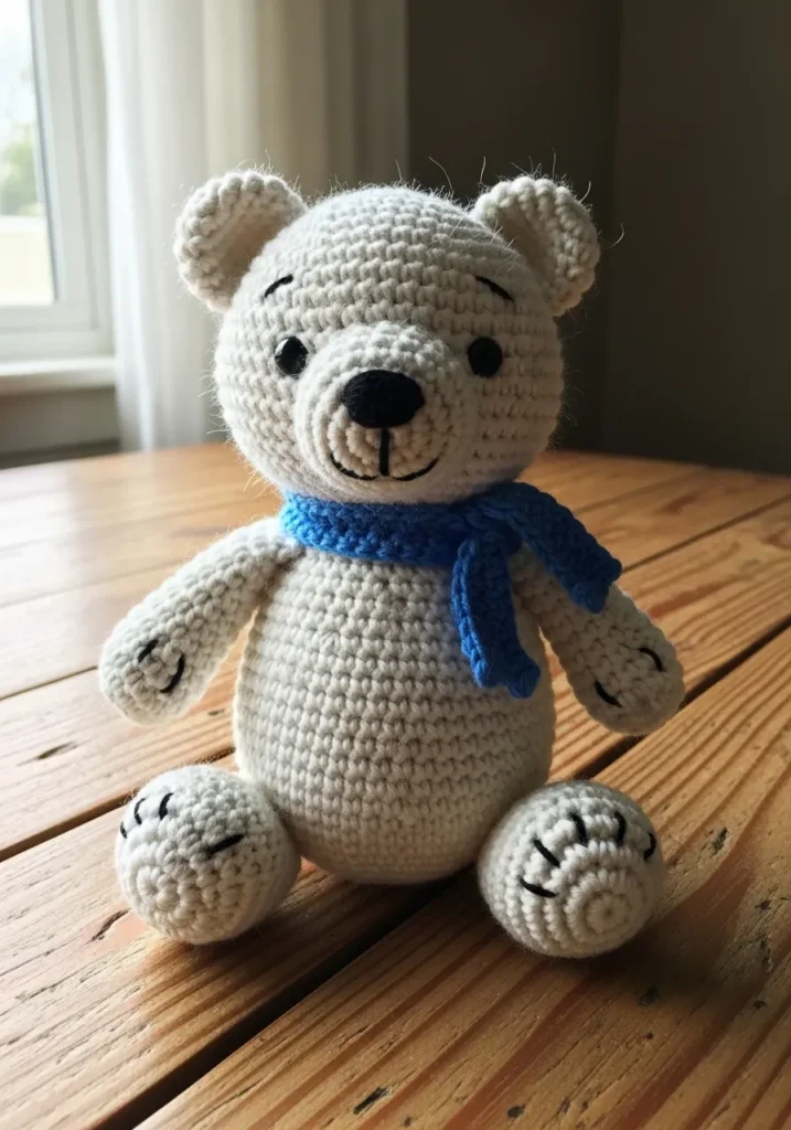 I love how classic this little bear feels. It reminds me of the kind of toy you keep for years on a bookshelf. Adding a scarf in different colors would be such an easy way to personalize it. I can already picture making one for a baby shower gift or as a cute winter decor piece.