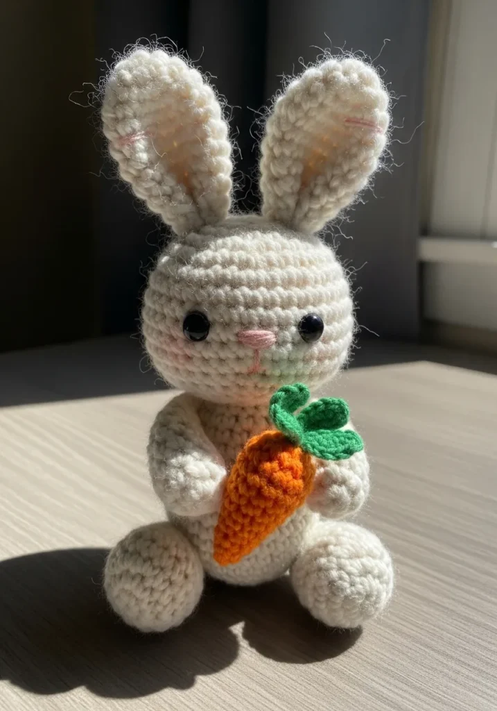 I think the carrot accessory is what makes this bunny extra special. It turns a simple plush into something with personality. This would be such a fun spring project, and I can already imagine customizing the accessories for different seasons. It is the kind of make that makes people smile instantly.