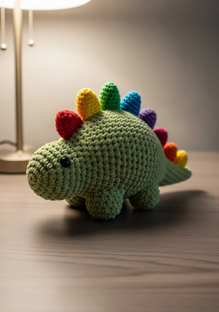 Rainbow Spiked Crochet Dinosaur