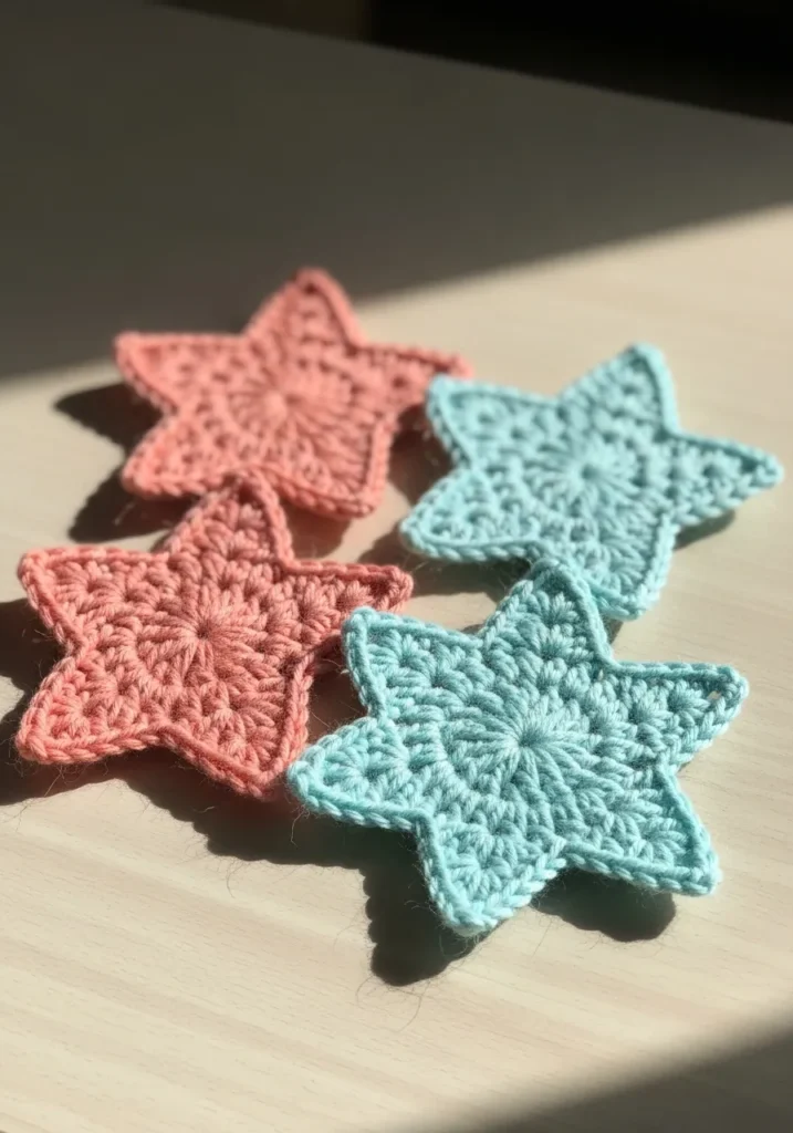I love projects like this because they are quick to finish and instantly brighten up a table. If I have leftover yarn in sweet colors, this is exactly the kind of small project I reach for. They are playful without being over the top, and they make such cute handmade gifts. Plus, working those star points is oddly relaxing once you get into the rhythm.
