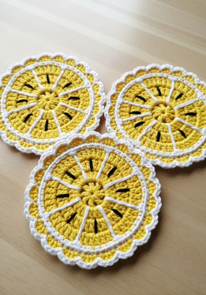 Sunny Lemon Slice Crochet Coasters