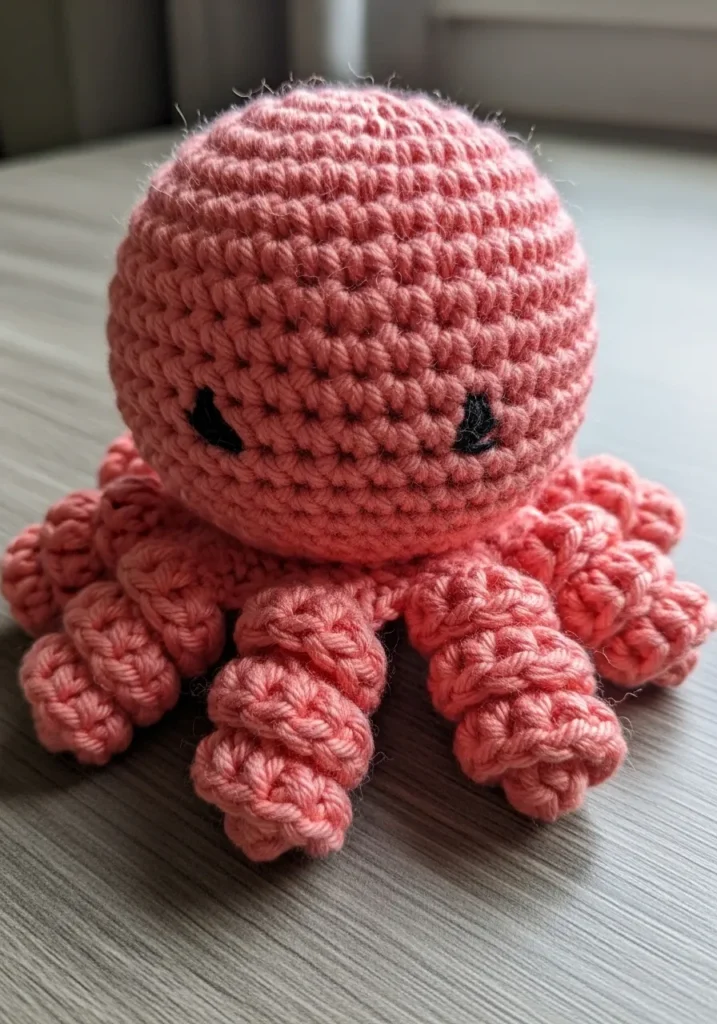 I love making little sea creatures like this because the tentacles are surprisingly relaxing to crochet. Once the head is done, the rest flows quickly. It is a playful project that feels creative without being complicated. Plus, that squishy shape is hard to resist.