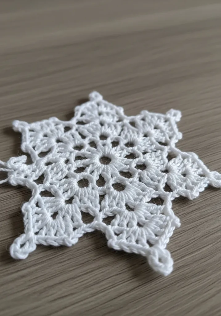 I always find lace patterns so satisfying because they look complex but work up faster than expected. Watching the snowflake take shape round by round feels almost magical. It is a perfect quick project when I want something pretty without committing to a big make. I also love making a few at once and scattering them around for instant charm.