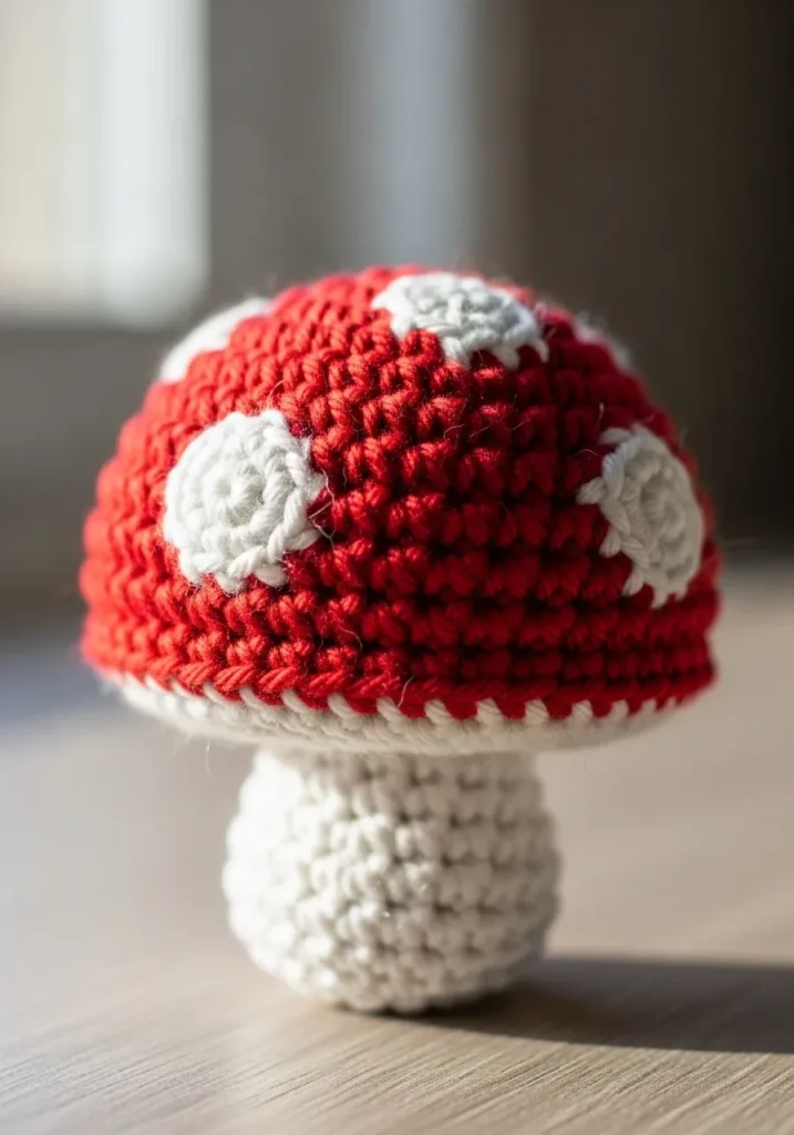 I love how cheerful and nostalgic this little mushroom feels. It works up quickly and is such a fun way to play with bold color. The spotted cap adds interest without much extra effort. For a small project, it definitely delivers big personality.