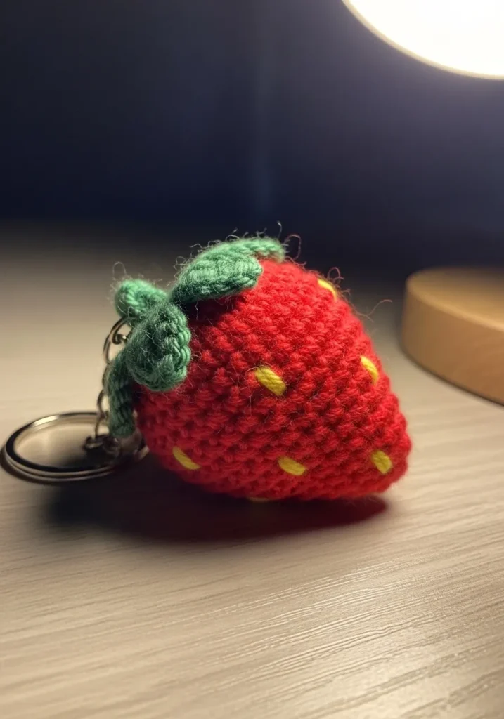 I love making fruity keychains because they are fast and full of personality. This one is especially satisfying since the color change and little seed details add interest without taking much time. It is a perfect scrap yarn project and makes the cutest handmade gift. Honestly, it is hard to stop at just one.