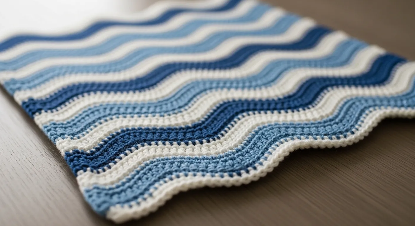 I always enjoy ripple patterns because they are rhythmic and relaxing to stitch. The color changes keep things interesting without feeling complicated. It is one of those projects that grows quickly once you find your groove. I find it so satisfying to see the waves build row by row.