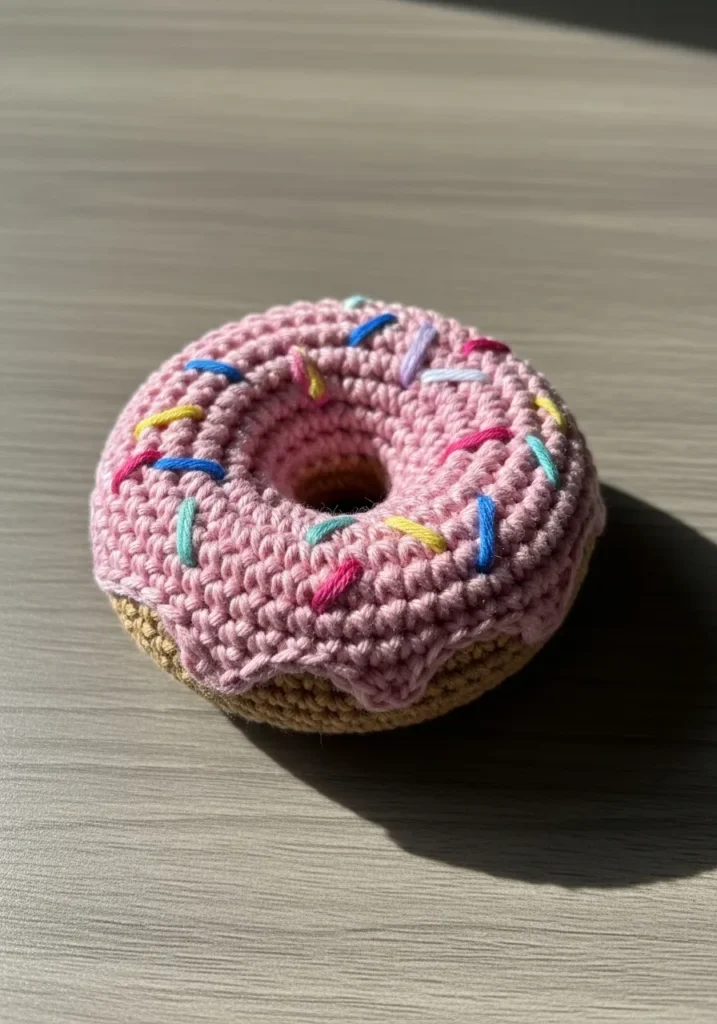 I think novelty items like this are such a hit at craft fairs. They are eye catching and instantly make people smile. This donut is small enough to use as a decor piece or even a pin cushion. Making one feels like creating a tiny dessert that never goes stale, and that alone makes it worth the time.