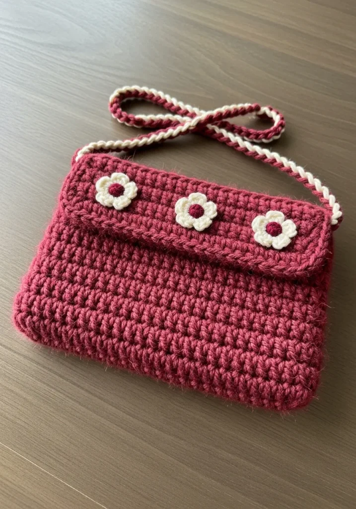 I am totally charmed by this little purse because it is the perfect size for carrying just the essentials on a weekend brunch date. If you are looking for a project that teaches you how to construct a simple flap and add decorative appliques, then this is a wonderful place to start. I find that these floral details are such a clever way to personalize a basic pattern and make it look like a high-end boutique find. It really is a delightful way to use up your favorite yarn shades and create something you will actually wear out and about.