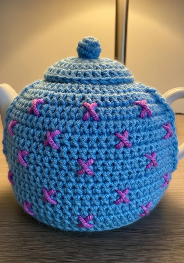 I’m quite a supporter of this project because it’s a brilliant fusion of two different needlecrafts—crochet and embroidery. If you’ve been looking for a way to liven up a solid-colored piece, these simple cross-stitches are a fantastic technique to keep in your back pocket. I find that a custom cozy like this turns a standard tea break into a more intentional, comforting moment of the day. It’s a wonderful example of how a few bold accent stitches can completely redefine the personality of a functional household item.