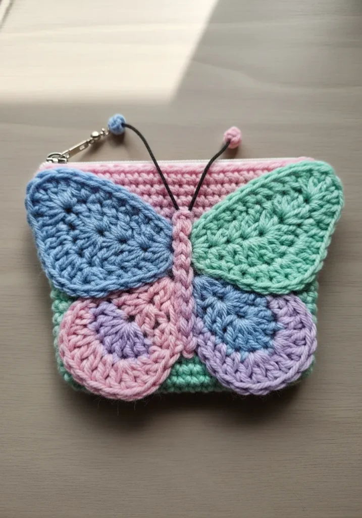 Pastel Butterfly Crochet Pouch With Whimsical Charm