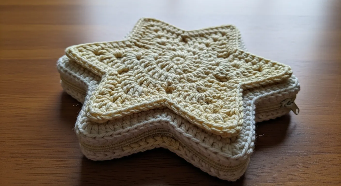 I love pieces like this because they feel both playful and practical at the same time. The star shape makes it stand out from basic square pouches, yet the simple yarn color keeps it elegant. It feels like the kind of project that brings instant joy while still being beginner friendly enough to try over a weekend.