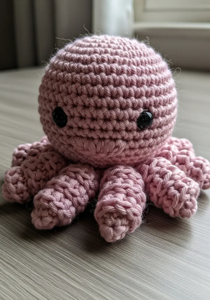 I think octopuses are such a fun beginner plush to try. The main body is worked in simple rounds, which builds confidence quickly. The tentacles are playful and forgiving, so there is no pressure to make them perfect. Holding a finished little octopus in my hands always feels like a tiny creative victory.