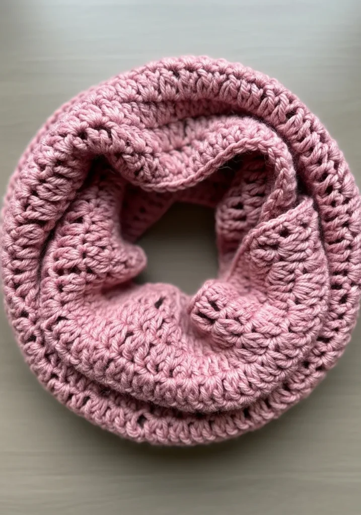 Cozy Pink Crochet Infinity Scarf