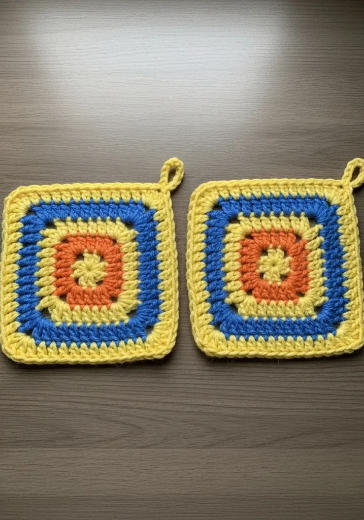 I am convinced that small kitchen accessories are the absolute best way to brighten up your daily routine without spending a fortune. If you’re into projects that are both nostalgic and super practical, these little squares will make you smile every time you reach for a hot pan. They are incredibly easy to hook up while you’re chatting with friends or waiting for your own dinner to bubble away on the stove. I love how the color combination feels so fresh and modern, and they make the perfect housewarming gift for someone who loves a pop of sunshine in their home.