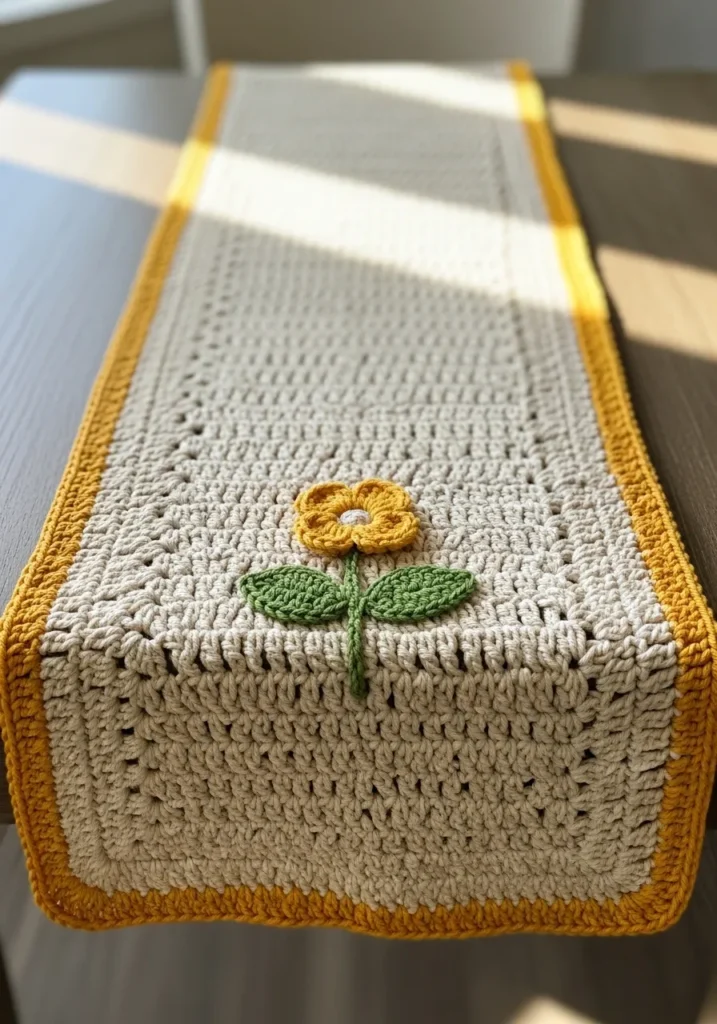 I am absolutely in love with how a simple floral detail can completely transform a basic home item into a boutique-style masterpiece. If you’re into hosting brunch or just want to freshen up your dining space for the season, this project is a total joy to work on. The main body is repetitive enough to be relaxing, while the little flower gives you a fun chance to practice your appliqué skills. It is the kind of thoughtful, handmade touch that makes guests ask where on earth you bought such a beautiful piece.