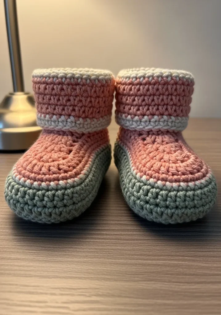 I am absolutely convinced that baby items are the ultimate crochet “evergreens” because people are always looking for that perfect, heartfelt shower gift. If you’re into projects that are portable and pack a huge punch in the “aww” department, these booties are a dream to work on. They allow you to practice working in the round and mastering clean color transitions on a very small, manageable scale. I love how the folded-over cuff adds an extra layer of warmth and a touch of classic charm that makes these look like a treasured family heirloom from the moment they’re finished.