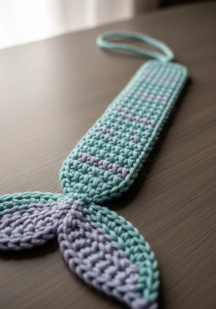 I think bookmarks are such underrated quick projects. They are fast, practical, and so fun to personalize. A mermaid tail like this feels playful and creative, and it is perfect for using up leftover yarn in a cute way.