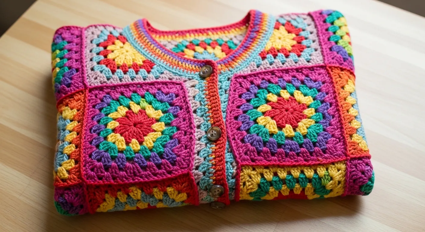 I absolutely adore a statement cardigan like this because it feels like wearable art. Piecing together granny squares and watching them transform into a full garment is such a confidence boost. It looks intricate and impressive, yet it is built from repeatable squares that feel manageable once you get into the rhythm. Every time I finish something like this, I feel proud enough to wear my skills out into the world.