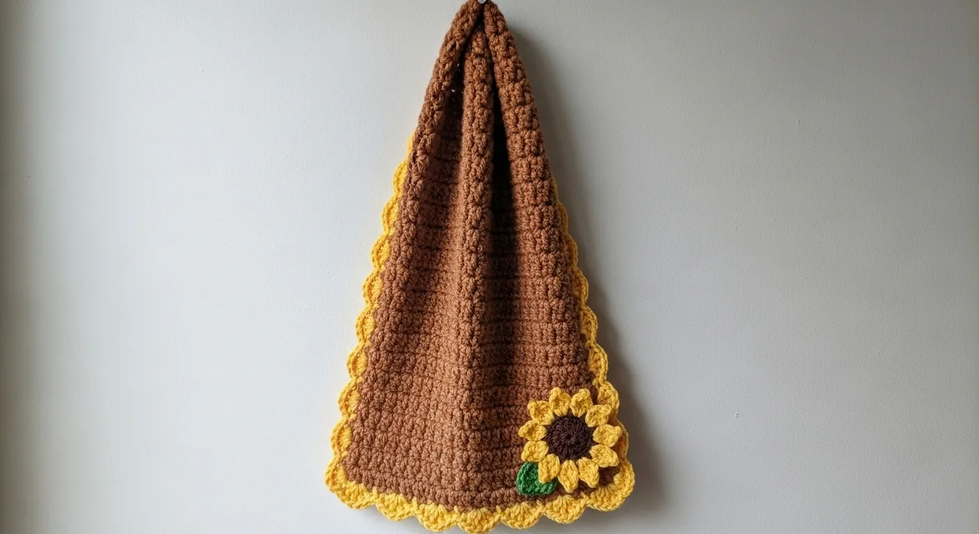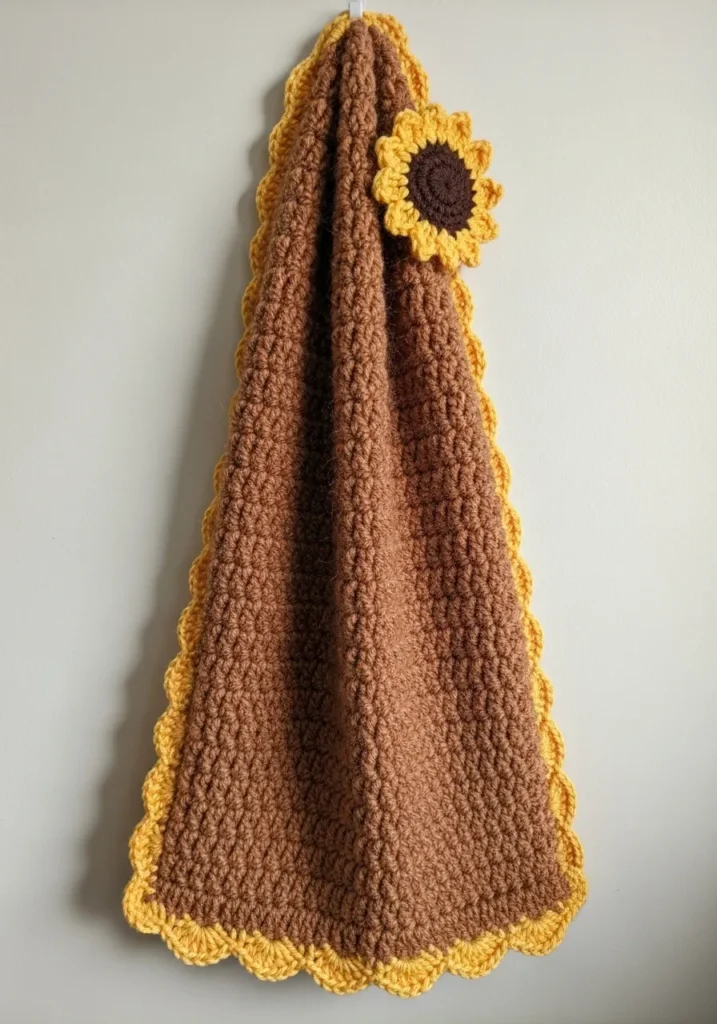 I am totally convinced that sunflowers make everything better, and this towel is the ultimate proof of that. If you’re into functional decor that adds a bit of farmhouse charm to your home, you will find this project incredibly rewarding to finish. It is a fantastic way to practice your scalloped edges and basic flower construction without the pressure of a massive garment. This would be such a thoughtful housewarming gift for a friend who loves a cozy kitchen, or even as a special treat for yourself to make drying dishes feel like a little less of a chore.