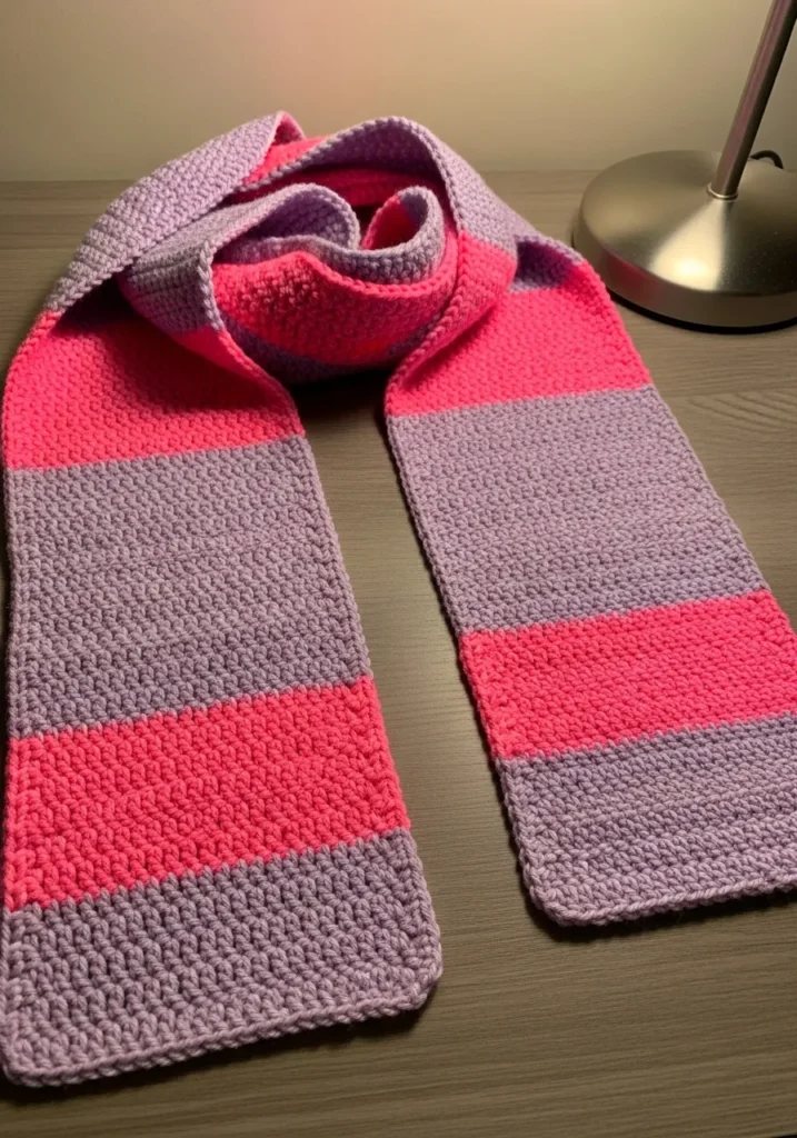 I am obsessed with how punchy these colors look together, and honestly, they would brighten up even the most boring winter coat. This is such a fantastic beginner project because you only need to master one basic stitch and a simple color change to get something that looks like it came from a trendy boutique. It is so satisfying to see those big blocks of color grow as you work. If you are looking for a quick win that feels like a high-fashion accessory, this is definitely the one to try.
