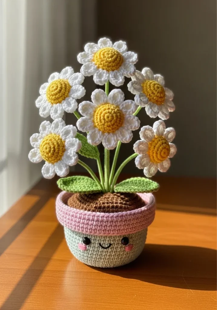 Crochet Daisy Bouquet in a Pink Pot