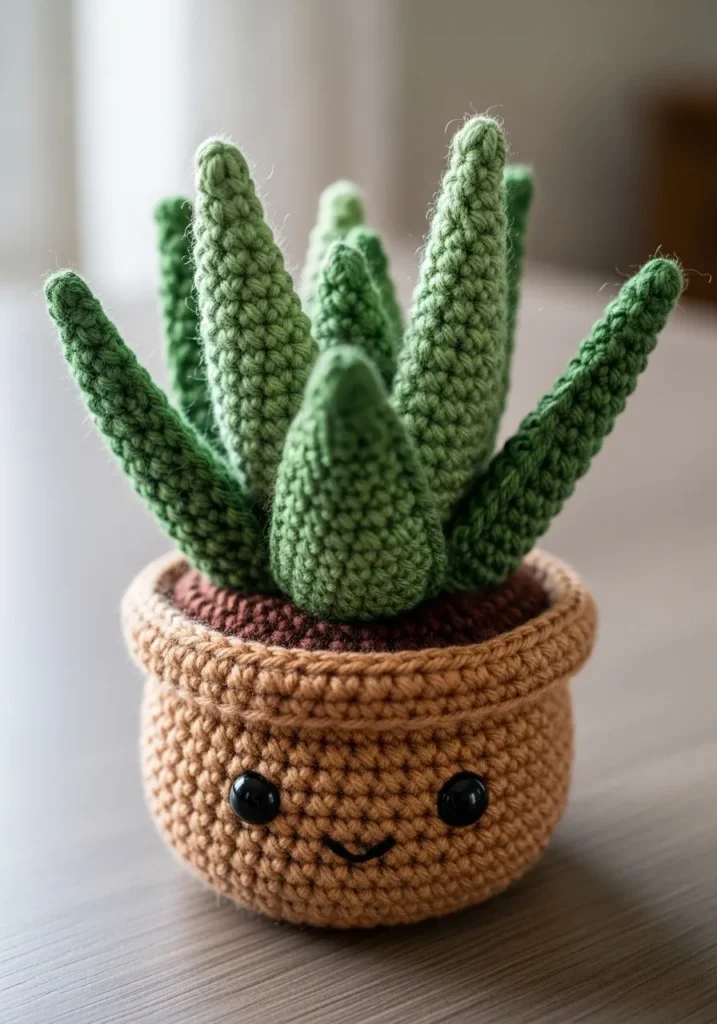 Crochet Aloe Vera in a Happy Pot