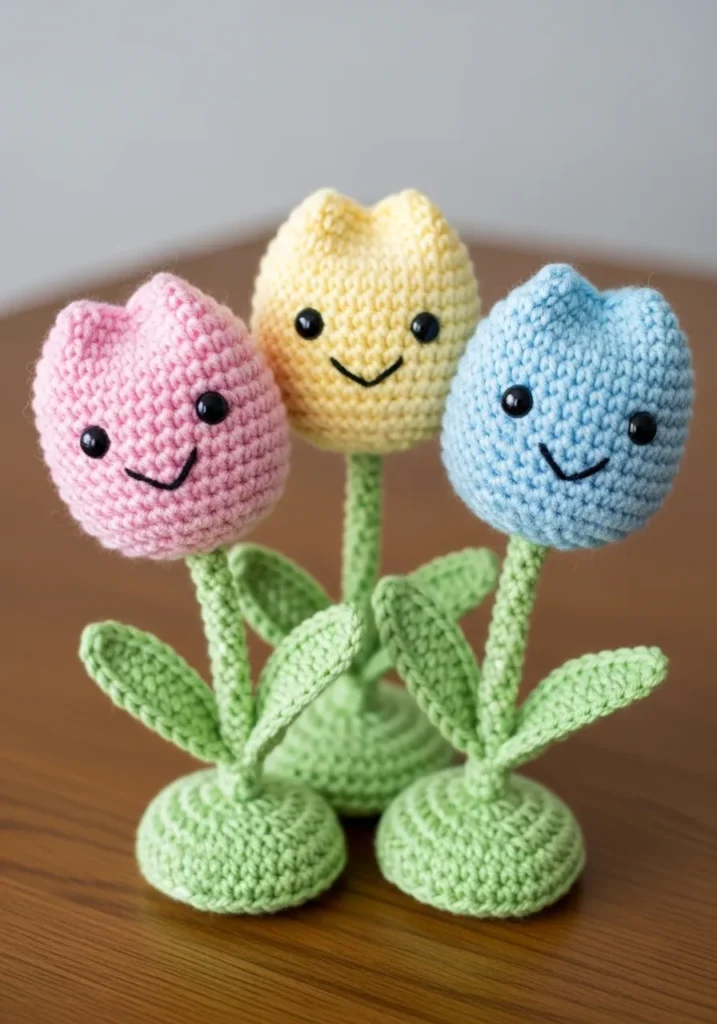 Pastel Crochet Tulip Trio