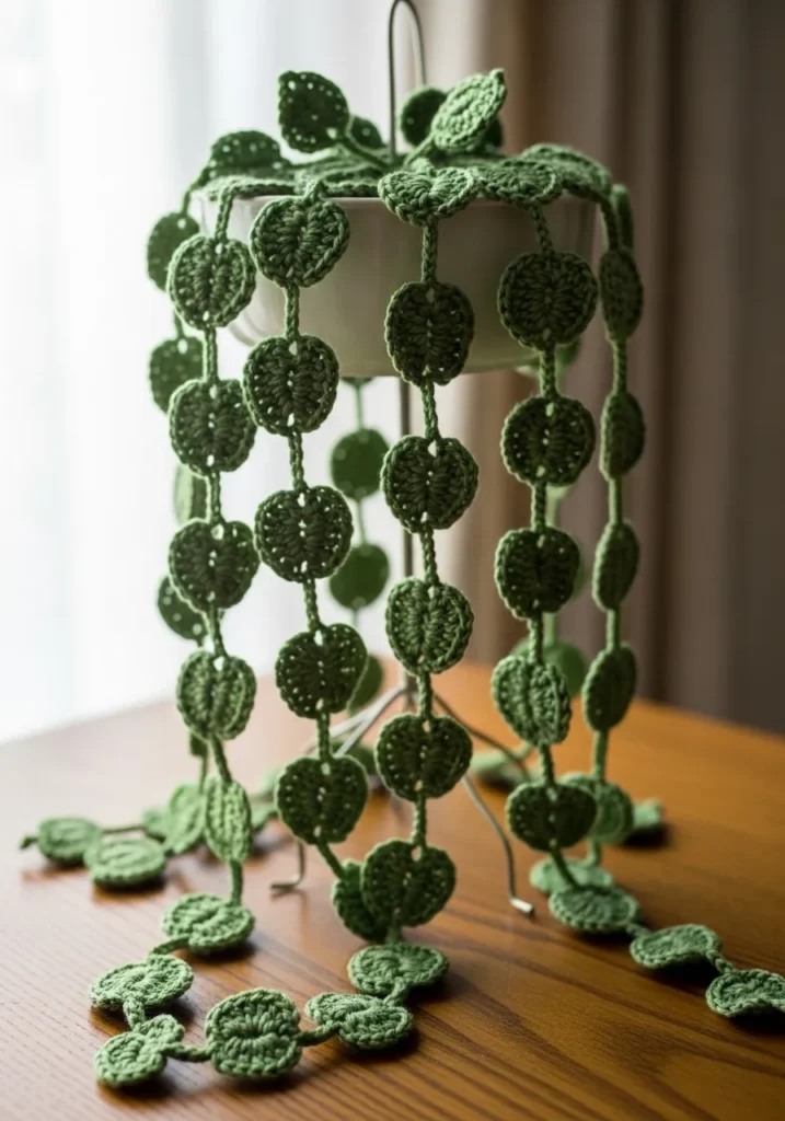 Crochet Heart Leaf Hanging Vine
