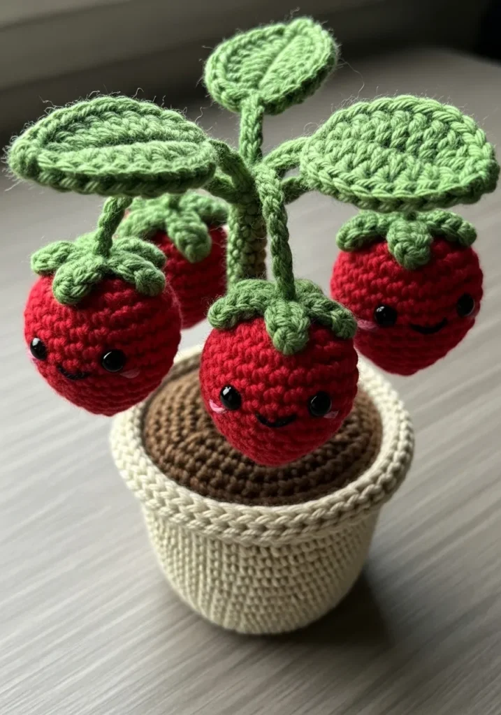 I find this project so charming and creative. It feels like a little handmade fruit garden you can keep on a shelf all year round. If you enjoy colorful yarn projects, this one is so satisfying to make. I love that each strawberry adds personality, and the finished piece looks like something straight out of a cute cottage kitchen.