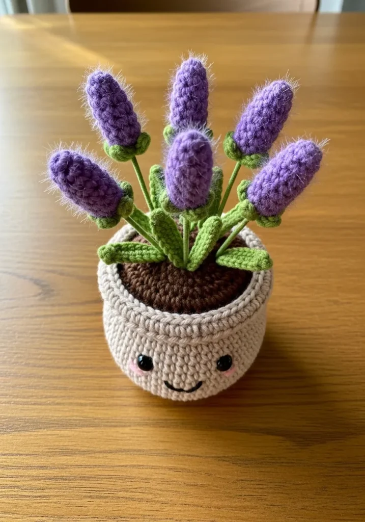 Crochet Lavender in a Smiling Pot