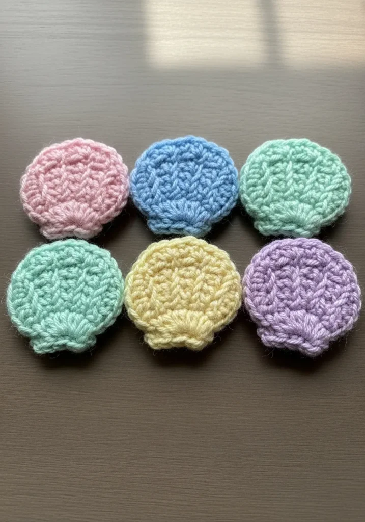 These small round crochet scrubbies come in soft pastel shades like mint, lavender, baby blue, pale yellow, and blush pink. Each one has a slightly textured circular stitch pattern that helps with gentle exfoliation. The yarn looks soft yet durable, making them perfect for facial cleansing or dish washing. Their compact size makes them easy to stack in a bathroom basket or by the sink.
