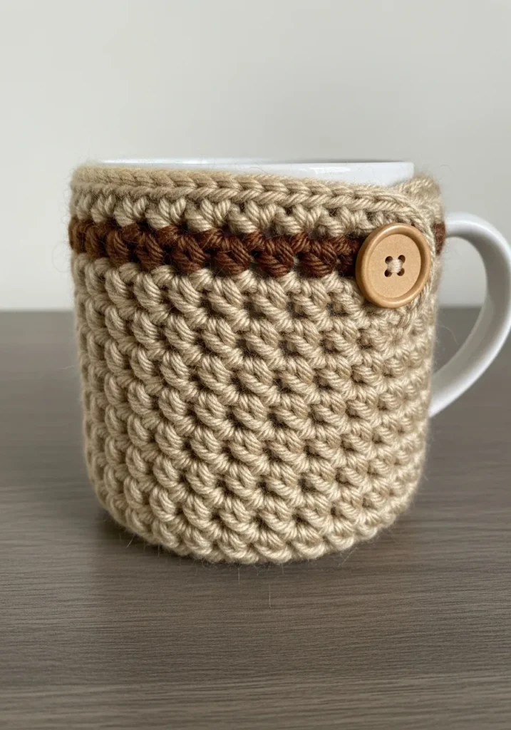 I love this project because it is the ultimate “instant gratification” craft for anyone with a spare hour and some leftover yarn. It is incredibly easy to customize with different colors to match your kitchen decor or a friend’s personality. Plus, it is such a clever way to keep your coffee warm while protecting your hands from a hot mug. There is something so satisfying about adding that final wooden button and seeing a plain cup suddenly look totally boutique and gift-ready.